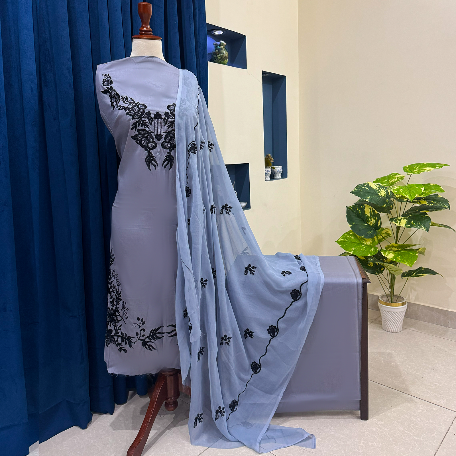 Crafted from premium embroidered lawn fabric, this unstitched suit features delicate threadwork with an elegant and timeless design. Soft, lightweight, and breathable, it is ideal for warm weather and everyday wear, allowing you to stitch and style it according to your preference. The intricate embroidery adds a graceful touch, making it suitable for both casual and semi-formal occasions.
