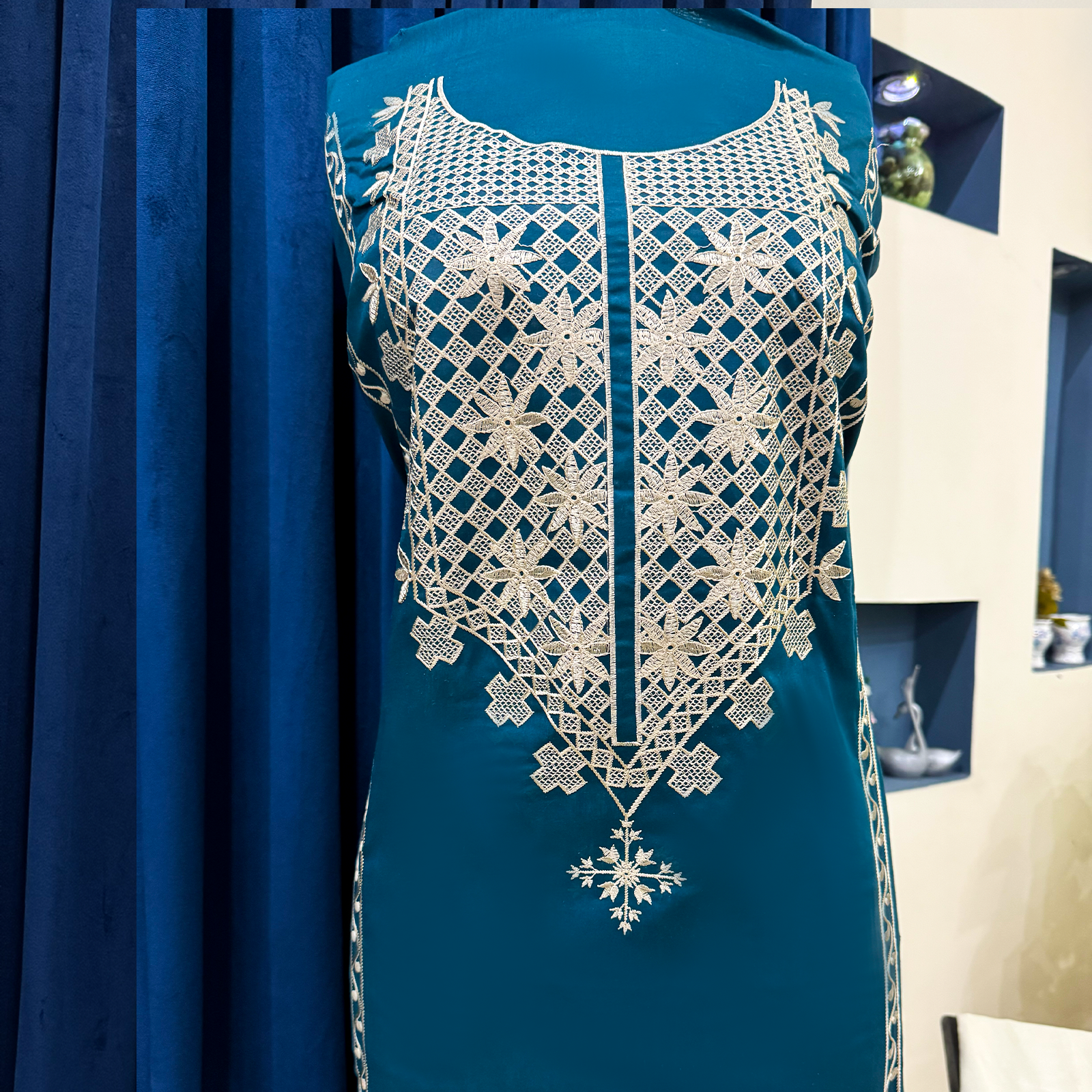 Crafted from premium embroidered lawn fabric, this unstitched suit features delicate threadwork with an elegant and timeless design. Soft, lightweight, and breathable, it is ideal for warm weather and everyday wear, allowing you to stitch and style it according to your preference. The intricate embroidery adds a graceful touch, making it suitable for both casual and semi-formal occasions.