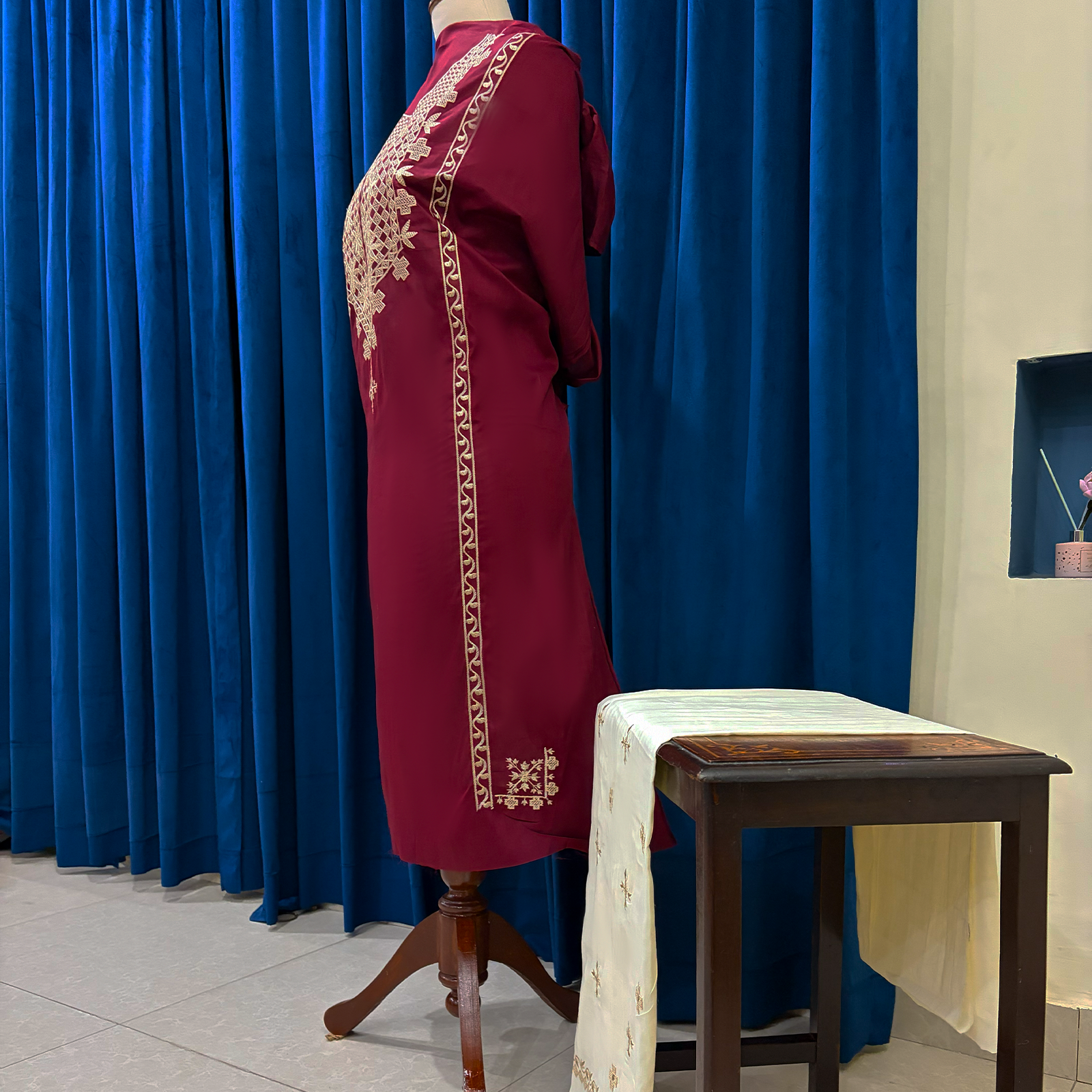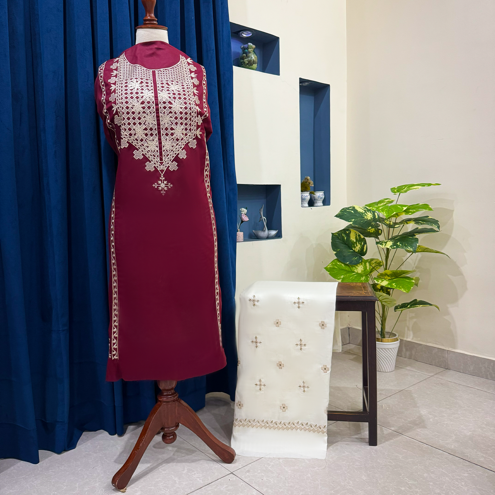 Crafted from premium embroidered lawn fabric, this unstitched suit features delicate threadwork with an elegant and timeless design. Soft, lightweight, and breathable, it is ideal for warm weather and everyday wear, allowing you to stitch and style it according to your preference. The intricate embroidery adds a graceful touch, making it suitable for both casual and semi-formal occasions.