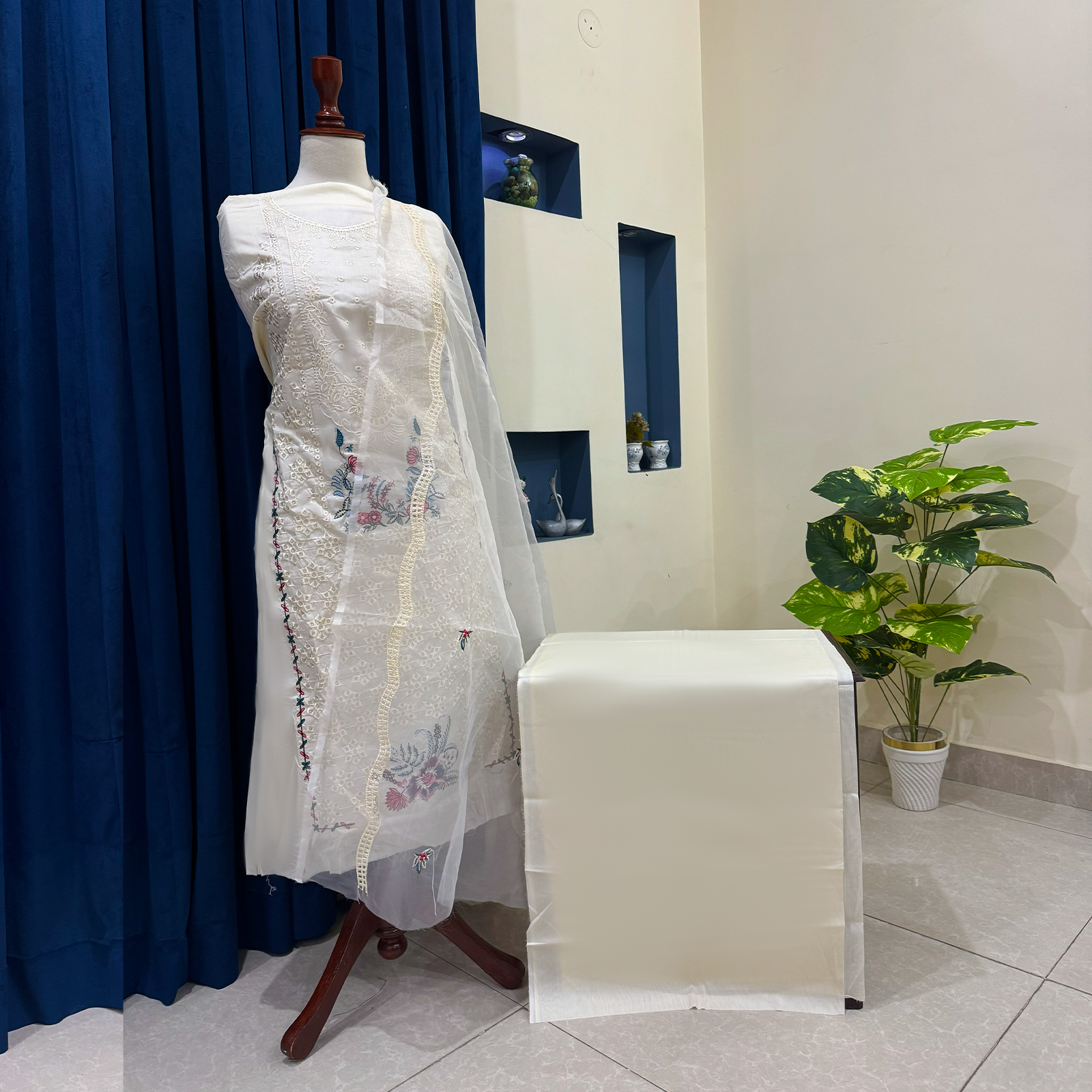 Crafted from premium embroidered lawn fabric, this unstitched suit features delicate threadwork with an elegant and timeless design. Soft, lightweight, and breathable, it is ideal for warm weather and everyday wear, allowing you to stitch and style it according to your preference. The intricate embroidery adds a graceful touch, making it suitable for both casual and semi-formal occasions.